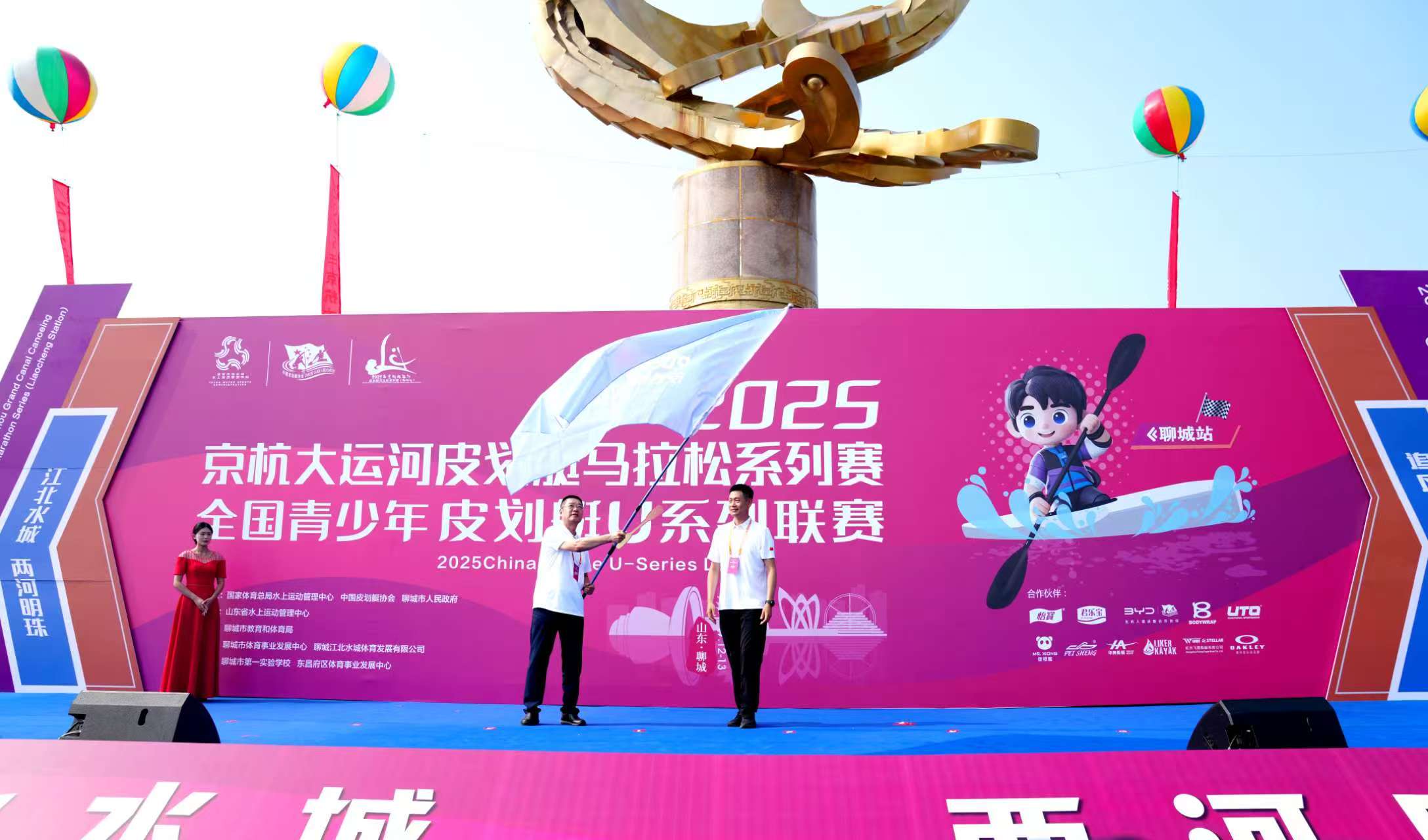 2025年7月12日至13日,由国家体育总局水上运动管理中心、中国皮划艇协会、聊城市人民政府共同主办的2025年全国青少年皮划艇U系列联赛(聊城站)和2025年“京杭大运河”皮划艇马拉松系列赛(聊城站)在山东省聊城市东昌湖水域成功举办。本次赛事吸引了来自全国各地约二百余名运动员参加。在“京杭大运河”皮划艇马拉松系列赛聊城站开幕式上,延续了以往的赛事传统,由中国皮划艇协会代表向承办地代表移交了赛事旗帜。
