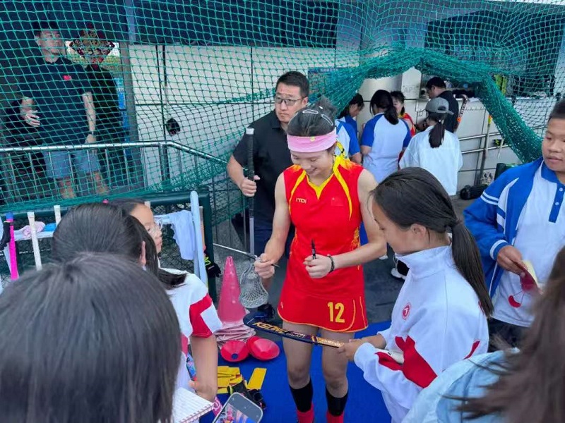 活动尾声,国家女曲队员们为小球迷们签名留念。孩子们手持球衣、护腿板和比赛手册,排成长队等待偶像签名。队员们一边签名一边鼓励道:“希望下次见面时,你们也能穿上国家队的战袍!”五年级队员们捧着签满名字的球杆激动地说:“这是我最珍贵的礼物,我要带着它打进全国赛!”