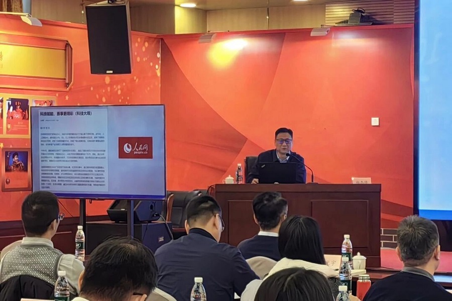 “当今世界竞技体育的较量,早已是科技实力的'隐形冠军赛'。”赵杰修副所长开篇点题,用全球视野勾勒出科技助训的战略地位。他结合自己扎根国家队科研保障一线的丰富经历,将深奥的理论转化为鲜活的案例——通过巴黎奥运会、北京冬奥会备战中大量真实影像与故事,现场揭秘科研团队如何像“数据侦探”般捕捉运动员的每一个微小动作,又如何将这些冰冷的数字转化为教练员手中的“战术说明书”,最终变成运动员赛场上的制胜一击。当大屏幕上出现科研设备实时监测运动员状态、智能系统辅助制定个性化训练方案的画面时,现场不时响起赞叹声。