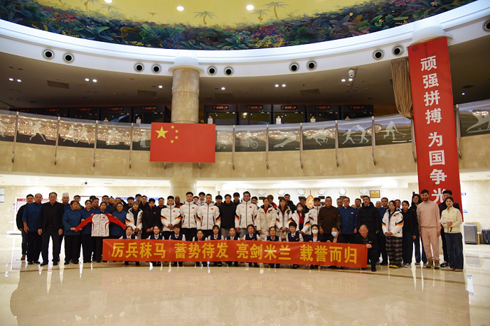 2026年1月18日晚9时,国家奥林匹克体育中心运动员公寓大厅暖意融融,一场简短而温馨的欢送仪式在此举行,为即将奔赴米兰冬奥会的速度滑冰国家队送行。奥体中心保障团队代表与速滑队全体成员齐聚一堂,工作人员手中“厉兵秣马 蓄势待发 亮剑米兰 载誉而归”的横幅鲜红醒目,承载着对队伍的深切期许与美好祝愿。仪式上,奥体中心向速滑队送上诚挚出征祝福,冬季运动管理中心副主任邢朔、速滑队领队雷懿代表队伍致谢,并赠送全队运动员签名的纪念队服。全体队员齐声喊出“感谢奥体、米兰必胜”的铿锵口号,嘹亮声响回荡大厅,尽显中国速滑健儿的昂扬斗志与夺冠决心。