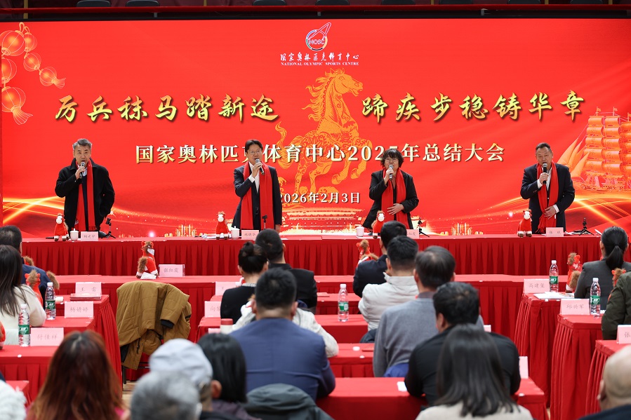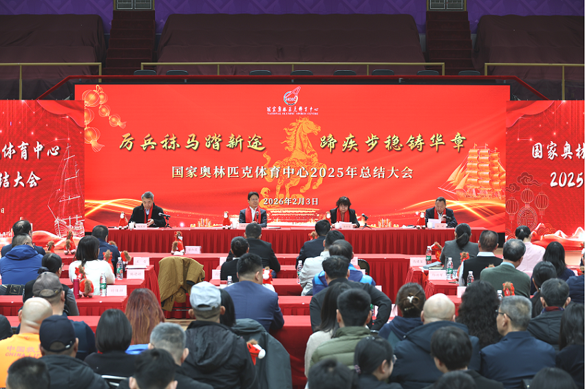2026年2月3日下午,国家奥林匹克体育中心召开以“厉兵秣马踏新途 蹄疾步稳铸华章”为主题的2025年总结大会,全面盘点全年耕耘收获,表彰先进典型,凝聚合力、提振士气。中心领导班子成员,各处室、场馆及公司负责人与干部职工200余人参会,会议由中心副主任张斌主持。
