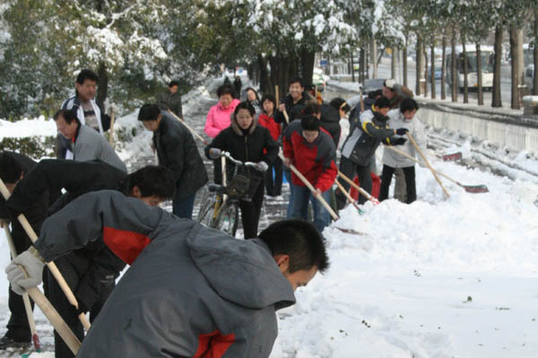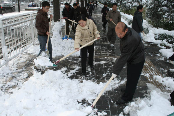 ,奥体中心组织各部门职工对中心院外责任区的积雪进行集中清扫,许多职工非常积极地加入到扫雪的队伍中,经过一小时的努力,清扫出道路近一公里,为行人提供了方便。