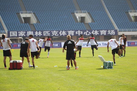 意甲超级杯参赛球队AC米兰在奥体中心进行公开训练