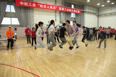 10月25日,中航工业“航空人风采”直属工会跳长绳比赛在奥体中心综合训练馆举行。
