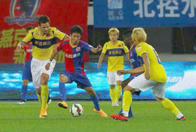 6月21日,2015中国足球甲级联赛第十四轮北控燕京队和青岛黄海制药队的比赛在奥体中心体育场举行,北控燕京队再次遭逆转,最终以2:3负于青岛黄海制药队。