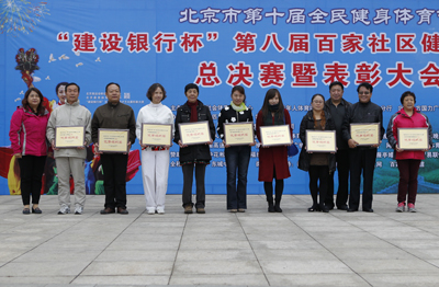 10月21日,“建设银行杯”第八届百家社区健身才艺大赛总决赛暨表彰大会在奥体中心举行,长达7个月的本年度百家社区健身才艺大赛也圆满落幕。中国老年人体育协会、国家奥林匹克体育中心、北京市体育局、中国建设银行等相关机构和领导出席了表彰大会,大众健身优秀团队还表演了精彩的节目。