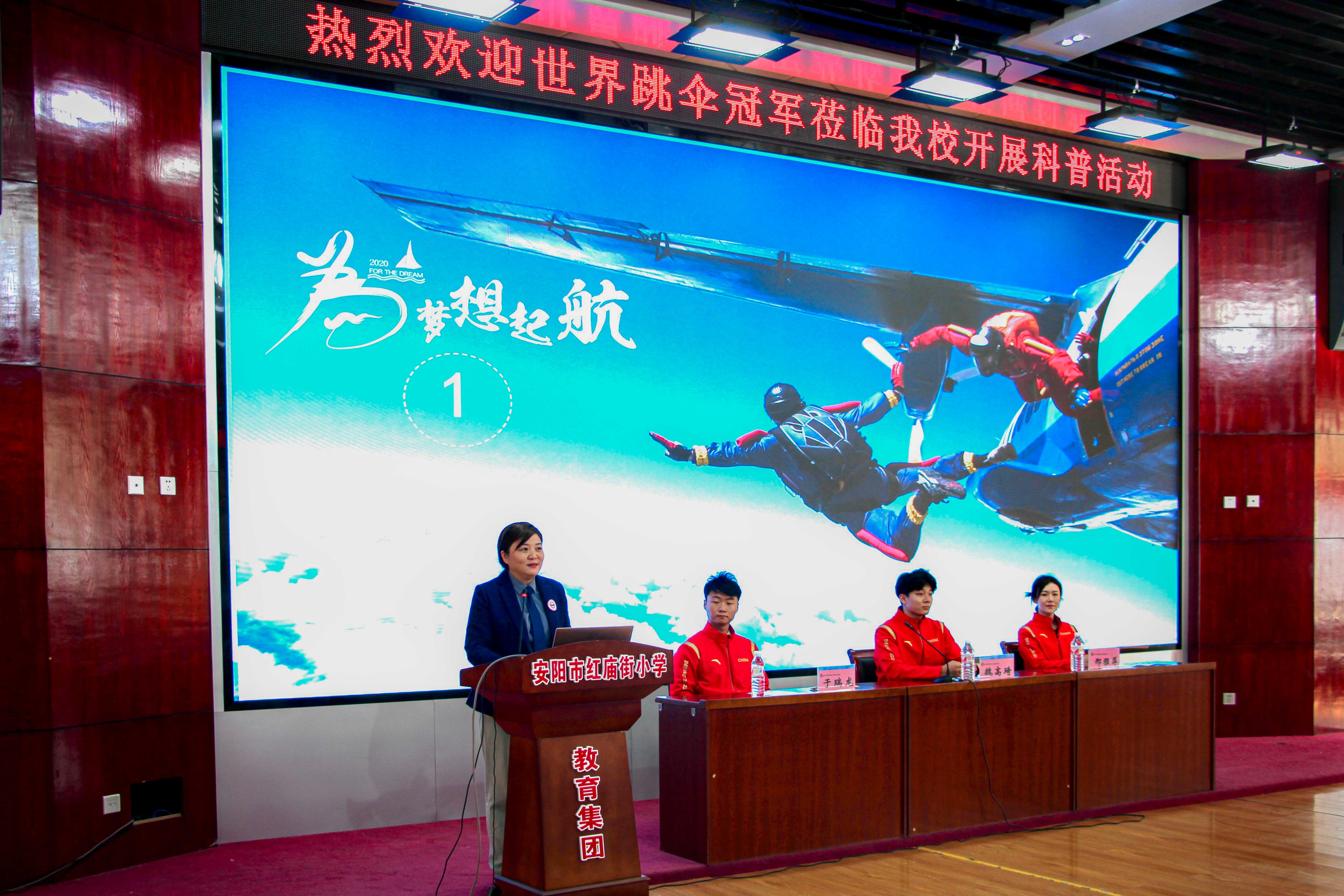 金秋十月,碧空万里。为大力弘扬中华体育精神,10月25日,安阳航校党委组织国家跳伞集训队的邢雅萍、于瑞龙、魏高琦三位世界跳伞冠军走进安阳市紫薇小学开展“冠军进校园”互动活动。