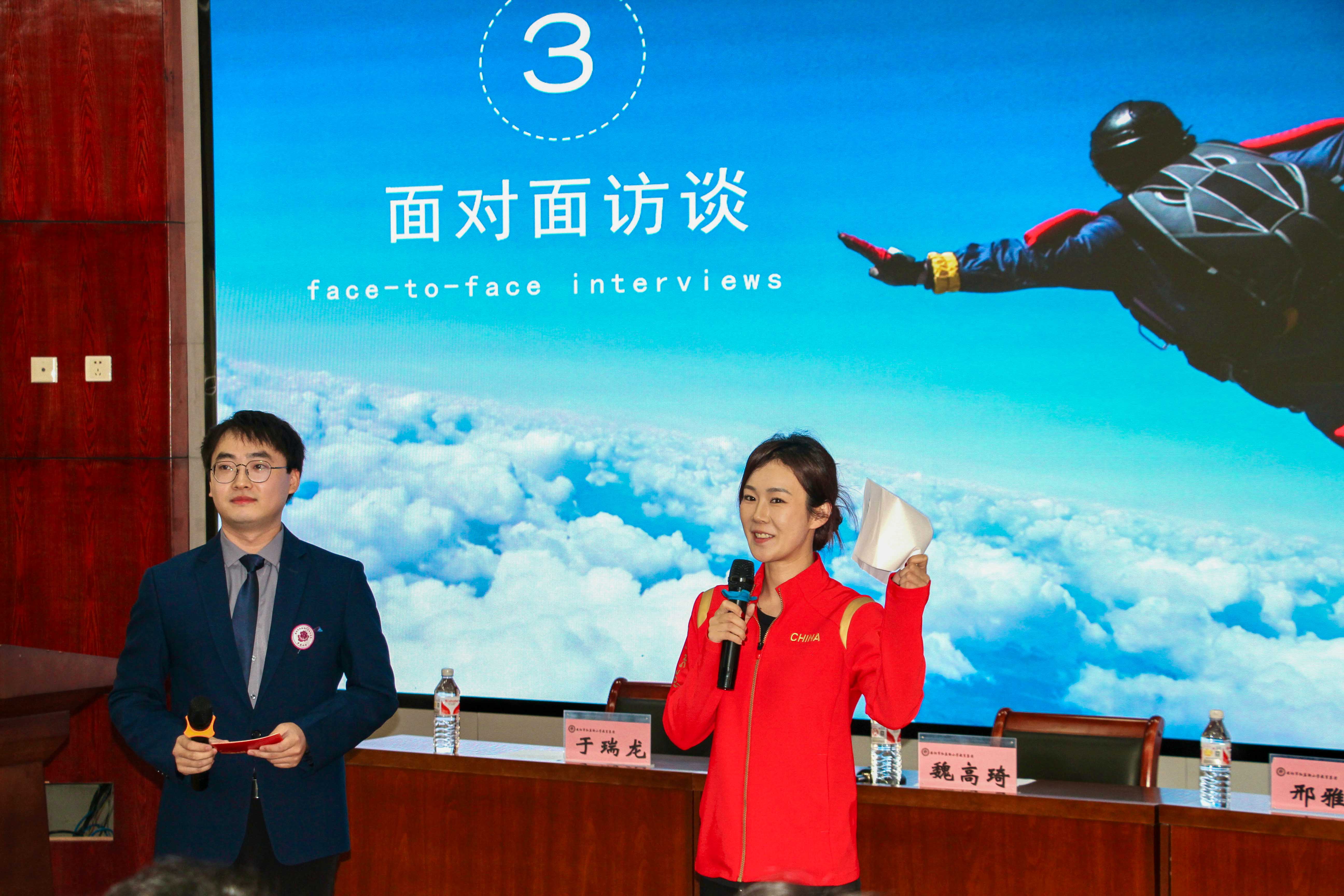 活动中,学生们首先通过观看PPT以及以跳伞运动为题材的微电影《飞梦》,对于跳伞运动的概念、意义、分类等基本知识以及跳伞运动员们的日常生活、常规训练以及备赛情况有了初步的了解,也被跳伞队员们不惧艰难、顽强拼搏、奋勇争先的体育精神所折服,切实感受到了跳伞这种极限运动的激情与魅力。