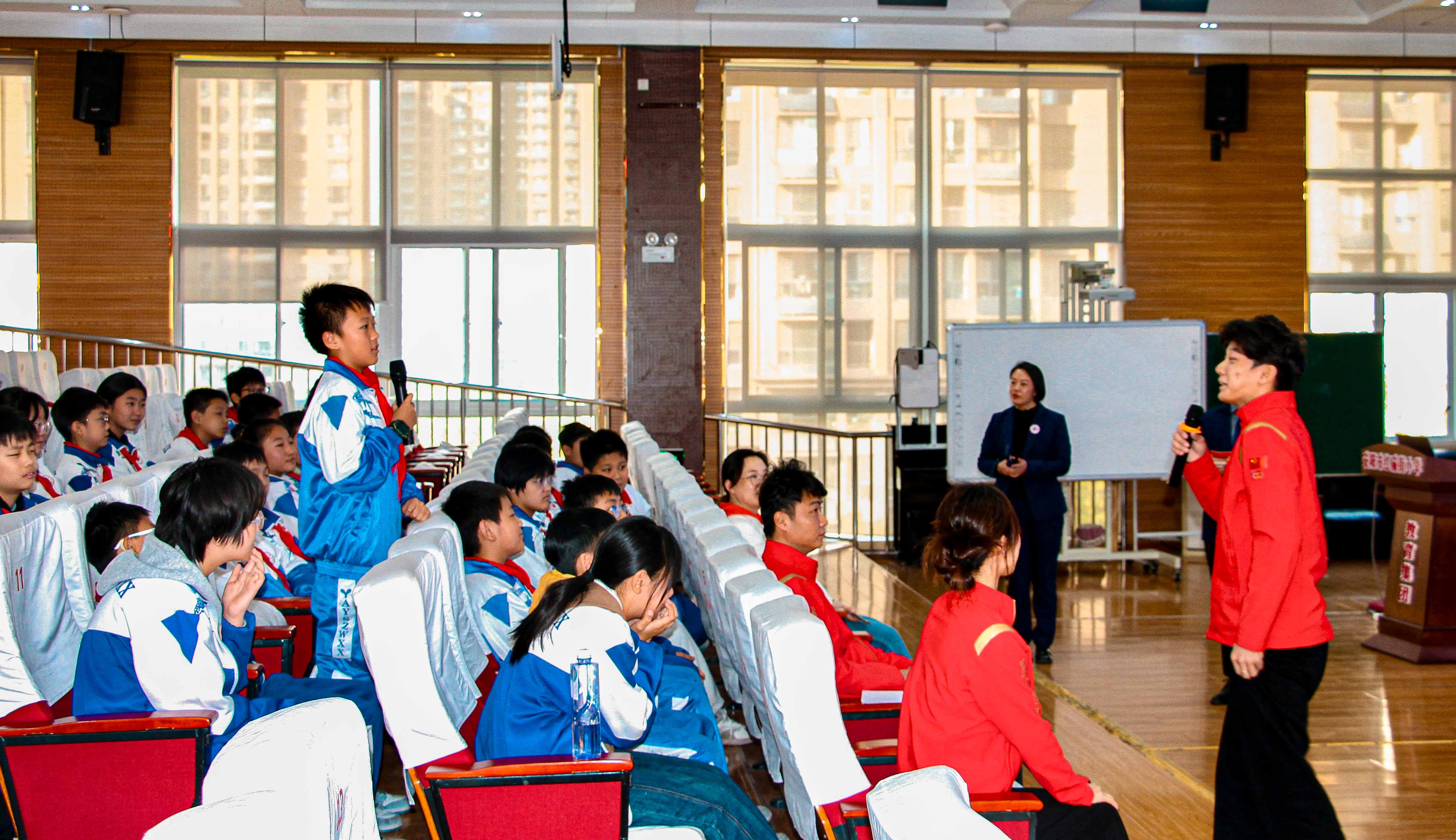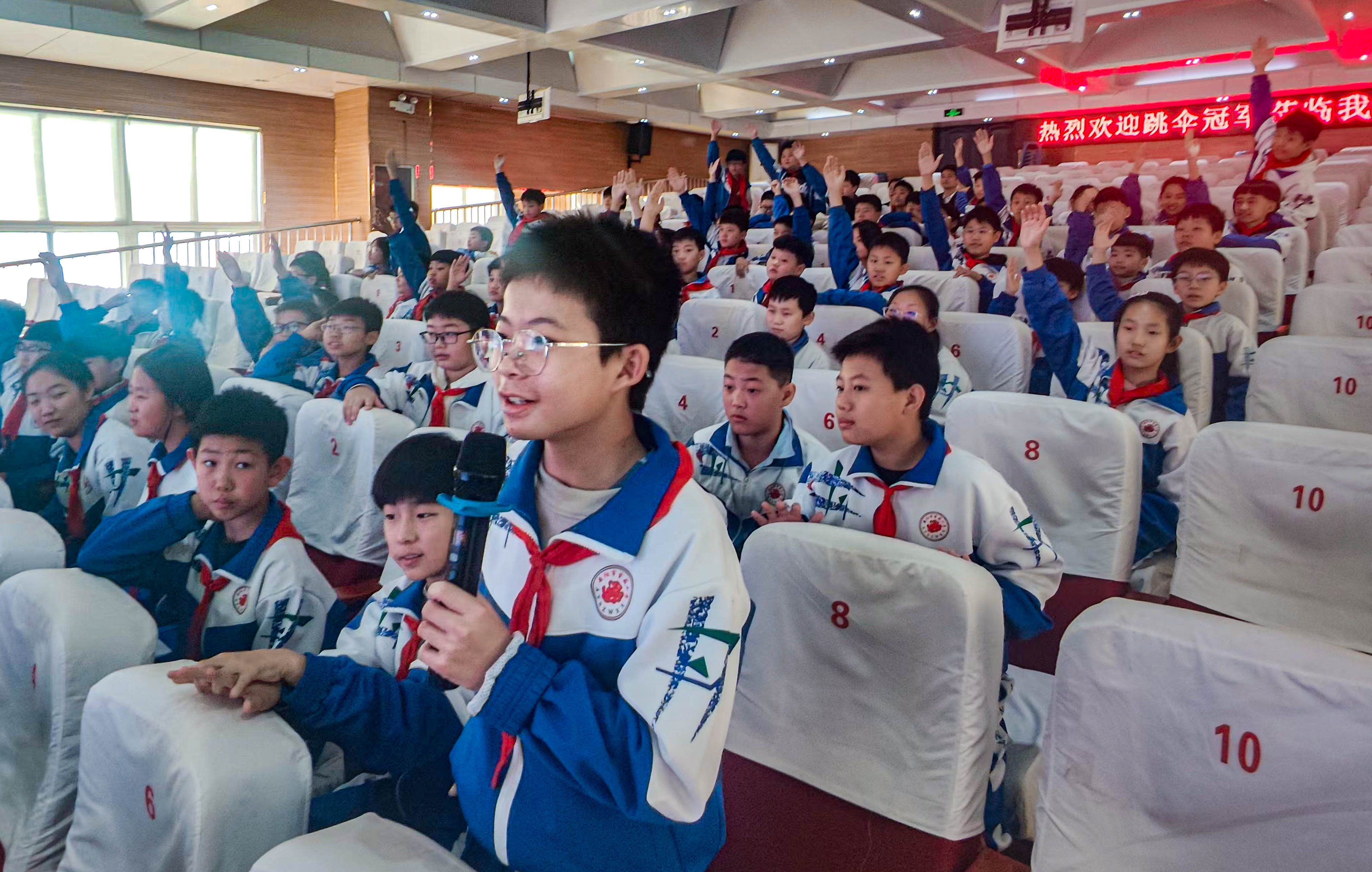 在随后的互动交流环节,学生们早已按捺不住心中的激动,纷纷向冠军们提出问题,“你们在跳伞的时候会害怕吗?又是怎么克服心理障碍成为世界冠军的?”“跳伞过程中发生过什么比较惊心动魄的事情吗?又是如何化险为夷的呢?”,各位跳伞世界冠军对学生们提出的问题一一耐心解答,并结合在训练、备战中的难忘经历向大家分享了自己的跳伞故事,讲述了自己夺冠背后的艰辛历程以及对于跳伞运动的热爱与坚持,用亲身经历向同学们展示着他们“为国而练、为国而战”的初心和“克服困难、超越自我”的决心,鼓励大家积极参与体育运动,强健体魄、锤炼意志,争做德智体美劳全面发展的新时代好少年。学生们纷纷表示要以各位冠军队员为榜样,努力学习,自强不息,勇于面对学习和生活中的困难和挑战,做自己的冠军。