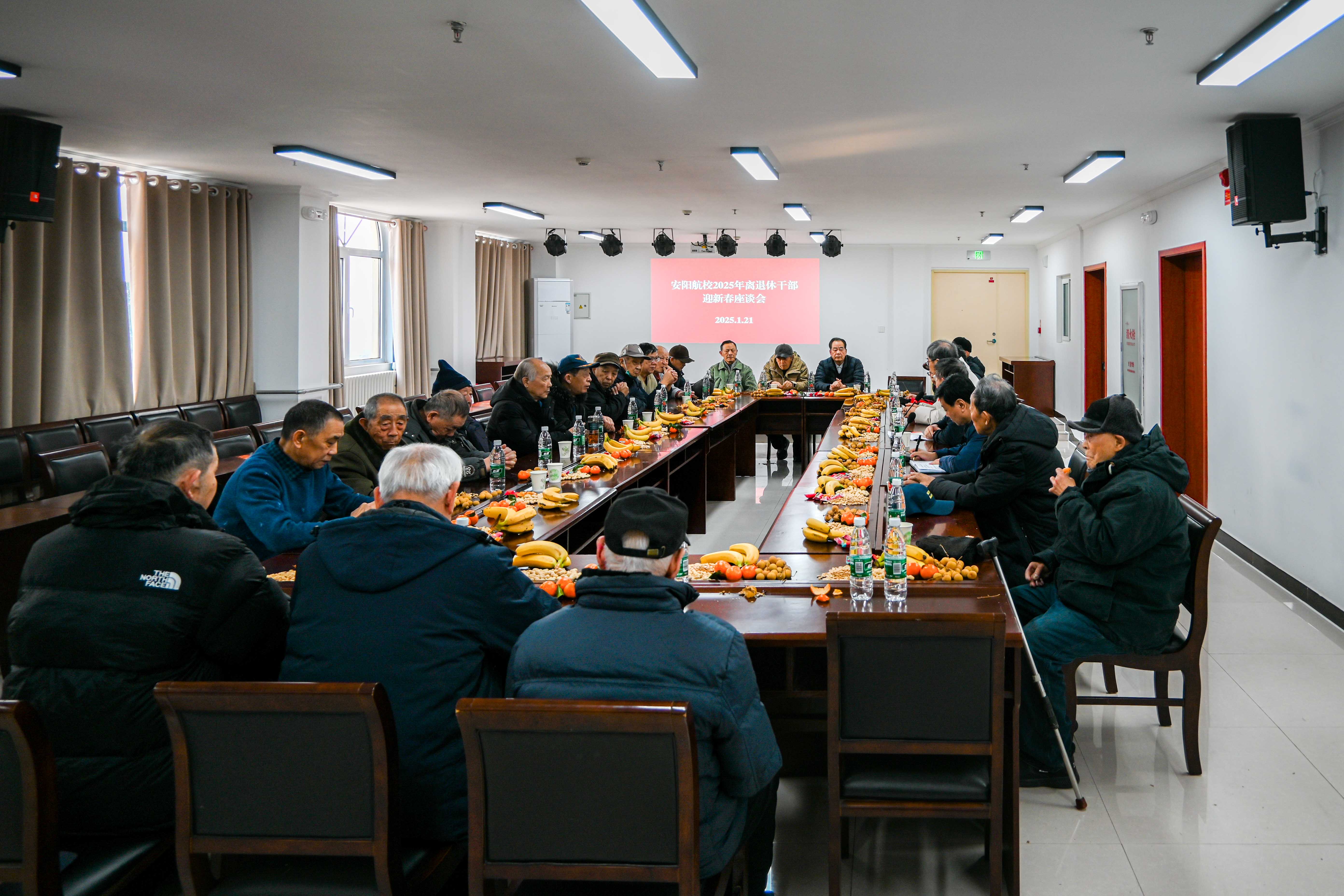为庆祝乙巳蛇年新春佳节,共叙情谊、共话发展,2025年1月21日下午,安阳航校组织离退休干部在运动员公寓四楼会议室召开了2025年离退休干部迎新春座谈会,校领导及离退休干部代表40余人参加会议,其中已经103岁高龄的离休干部周安荣也到现场参会。老同志们畅所欲言,积极为安阳航校深化改革、创新发展建言献策。
