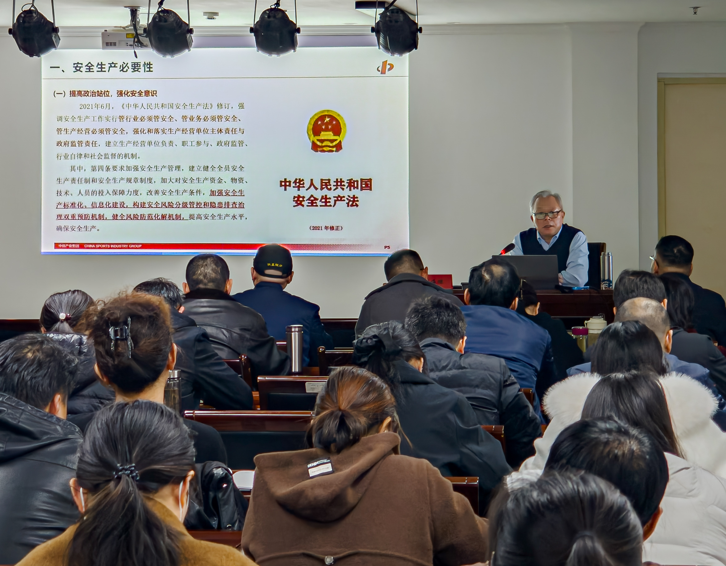 为切实提升干部职工安全意识和风险防范能力,2025年11月25日,安阳航校组织全校90余名干部职工参加“安全生产管理体系建设与实施”专题培训。本次培训邀请中体产业集团标准认证集团总工程师、全国体育标准化技术委员会设施设备分会副主任委员刘海鹏高级工程师授课,围绕体育场馆安全管理实践,带来了一场主题鲜明、内容扎实、发人深省的安全教育课。