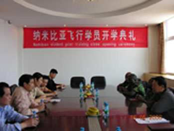 5月15日,安阳航空运动学校又一次迎来了,来自纳米比亚第三批飞行学员。在上午举行的开学典礼会上,于宗镭校长向来校参加培训学习的外籍学员表示热烈的欢迎。中国航空技术进出口总公司领导介绍了学员的情况,他们将在我校进行为期5个月的飞行培训学习。纳米比亚飞行学员表示,他们有决心、有信心掌握飞行驾驶技术,早日回国为发展纳米比亚空军作贡献。