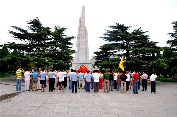 为了丰富创先争优活动的内容,7月19日下午,安阳航校党委组织全校党员和入党积极分子七十余人,到安阳市烈士陵园开展了一次“缅怀先烈找差距、爱岗敬业比贡献”主题党日教育活动。