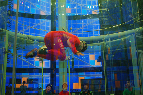 7月22日至25日,国家跳伞集训队一行25人,在大连金石滩飞行体验中心进行了为期3天的特技项目风洞训练。 国家跳伞队此次训练是在室内利用高速气流营造出和空中跳伞相同的环境,进行特技项目的训练,即在坠落过程中完成水平的盘旋和垂直的筋斗等动作。由于风洞技术可模拟与高空跳伞相同的空中环境,不用飞机起降,并且空中跳一次伞只有20多秒的坠落时间,不能得到充分体验,而风洞技术不受此限制,所以国家跳伞队此次大连集训极大地节约了成本,提高了效率。在3天时间的训练中,每位队员赢得了近1个小时的训练时间,迅速有效的提高了队员的技能水平,达到了预期效果。