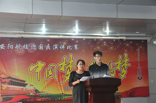 金秋送爽,丹桂飘香。9月25日,安阳航校举办“中国梦•我的梦”迎国庆主题演讲比赛。 本次比赛在校领导的支持下,由校办公室和团委发起和组织,经各处室选拔推荐,最终确定12名35岁以下青年选手参加了演讲比赛。为保证比赛的公平、公正,评委分别由校领导、纪检干部、中层领导、工会委员、团员职工代表组成,并规避选手处室人员担任评委。 比赛精彩、激烈,别出心裁,选手演讲内容丰富,有感人肺腑的、有耐人寻味的、有引起共鸣的……;形式多样,有清新脱俗的、有男女搭配的、有配以背景音乐的……,充分展现了安阳航校年轻干部阳光开朗、拼搏向上的精神风貌。 观众专心听讲,掌声一阵接着一阵。评委认真评分,最后评出了一、二、三等奖,优秀奖和组织奖。 此次演讲比赛凝聚了人心、提升了干劲,丰富了职工的文化生活,为年轻干部提供了一个展现风采的平台。