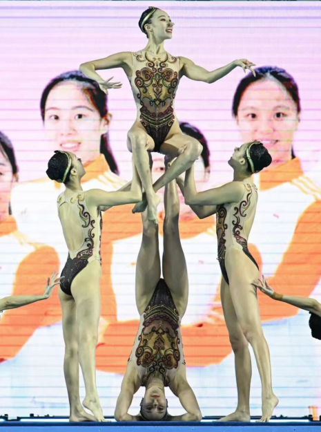 队伍的人才储备同样雄厚。常昊、冯雨、张雅怡等核心队员多为巴黎奥运会冠军成员。赛前,常昊在训练中遭遇胸肌挫伤,仍坚持带伤完成包含多个高难度托举与组合动作的表演,展现出顽强拼搏的体育精神。“疼痛是暂时的,团队荣誉才是永恒的。”她在赛后这样说道。