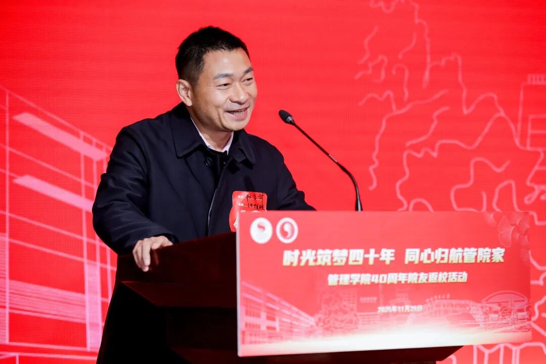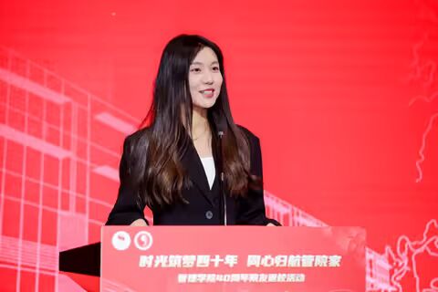 在“共叙过往·共话未来”院友代表发言环节,从80年代到新时代,八位院友依次站上发言席。他们讲述在管院的成长故事,分享奋斗路上的汗水与收获,也真诚地为母校未来发展出谋划策。一字一句,都是对“家”的眷恋,也满载对“家人”的期盼。