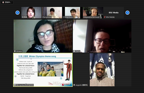 课程结业前,学员们纷纷用学唱的冬奥主题歌《一起向未来》,表达了对课程的感受和北京冬奥会的祝福,并用他们的创意汉字和冬奥主题画展示了他们的学习效果。