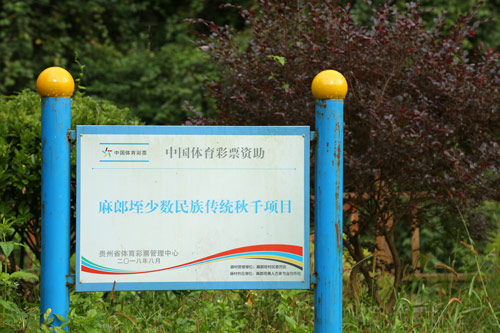 贵州麻郎垤村的大秋千 麻郎垤村是一个典型的纯彝族村寨,坐落于美丽的淤泥河乡西部,村寨已有500多年的历史。作为民族传统体育项目之一,彝族地区每逢重要节日都会搭建秋千,增加村民的节日氛围,增进乡亲们的交流沟通,促进健身娱乐发展,只要有彝族居住的地区就有秋千项目的存在。 在以前,这里的秋千并没有现在看到的这样美观、牢固及耐用。据盘州市淤泥河乡麻郎垤村党支部书记余二龙介绍,每逢节假日,都是秋千搭建的时期,一般都是村里的长者带着青年寻找砍伐高大的树木,需要花费好几天的时间才能搭建一个大秋千。节日后,又因为秋千的质量安全等问题不能再进行使用,需要进行拆除,等到下次节日再重新搭建。 如今情况却大大不同了,贵州省体育局和省体彩中心了解情况后,给予了他们资金援助,麻郎垤村有了属于自己结实耐用的大秋千。在麻郎垤村的文化广场,可以看到三个不同类型的秋千,开头提到的又高又大的秋千名为高索秋,它有八九米那样高,宽也有三四米。作为彝族传统体育项目之一,高索秋是情感表达、祝福希望的象征。