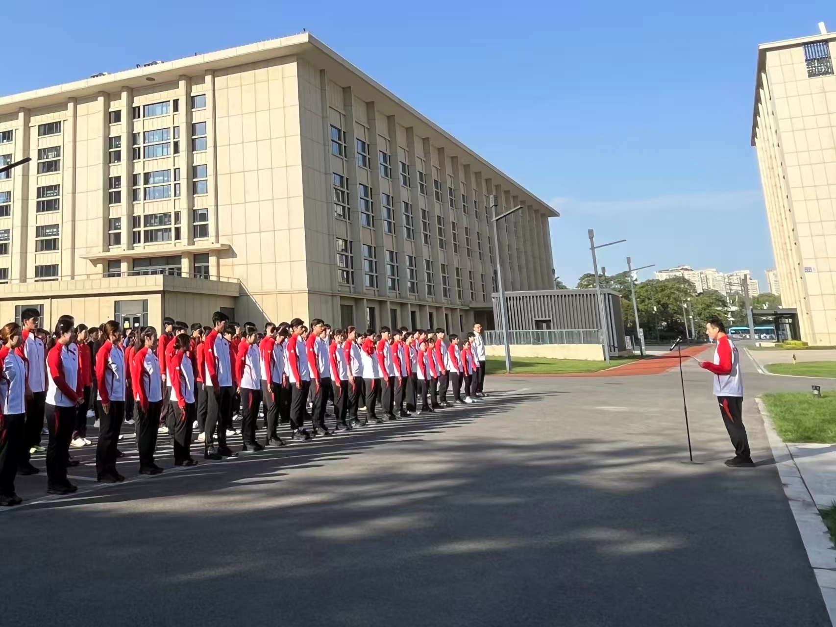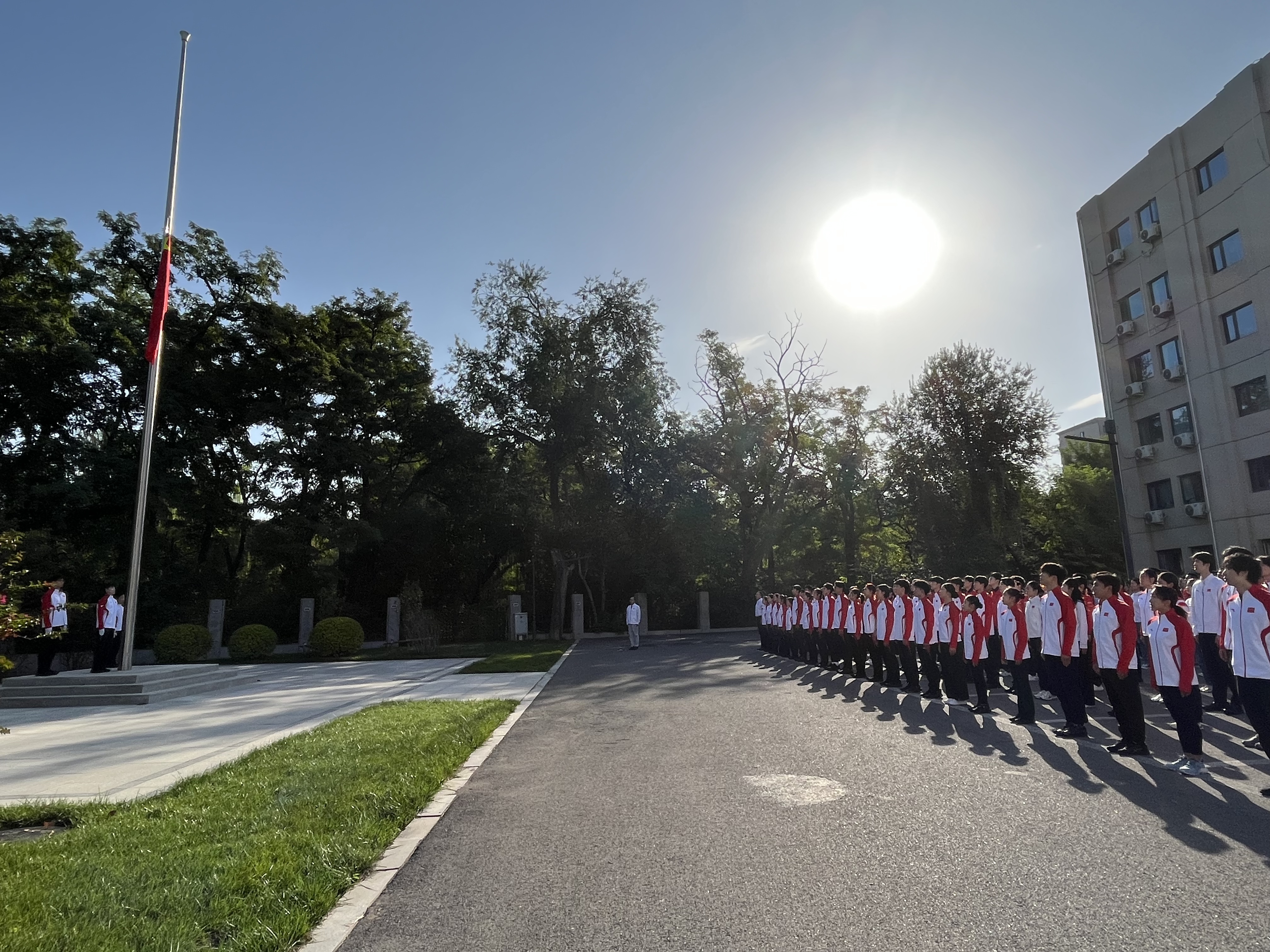 为进一步强化干部职工、运动员教练员爱国主义教育,激发冰雪项目运动队爱国热情,增强为国争光的使命担当,以昂扬奋进的精神状态备战2026年米兰冬奥会,在祖国即将迎来76周年华诞之际,冬运中心党委于9月30日在首都体育馆升旗广场举行升国旗仪式。冬运中心在京全体干部职工、相关协会工作人员,以及国家短道速滑队、国家花样滑冰队和国家冰壶队运动员、教练员、工作人员共200余人参加。