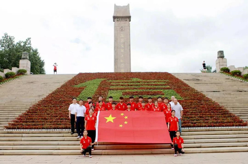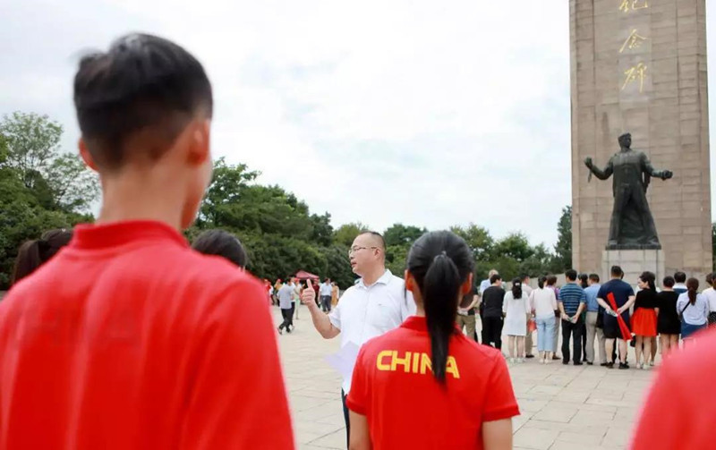 在庄严的革命烈士纪念碑前,运动员们聆听了革命烈士的事迹讲解,为牺牲的革命先烈进行默哀,并庄严宣誓:“缅怀先烈,牢记传统;不忘初心,牢记使命;不畏艰苦,努力拼搏,为国争光;为青春的理想而努力拼搏,为中华民族的伟大复兴而努力奋斗!”