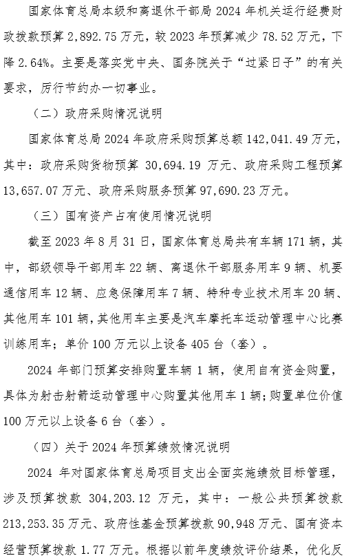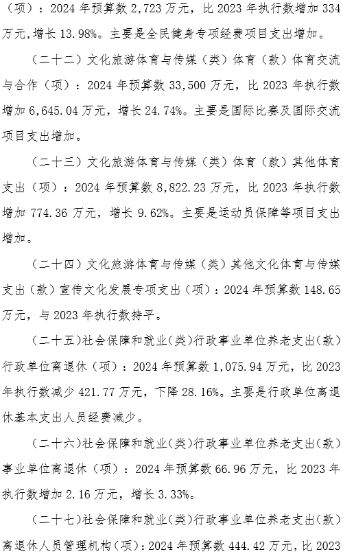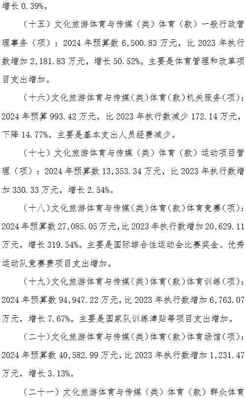 国家体育总局2024年部门预算