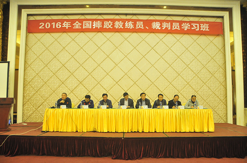 由国家体育总局举摔柔中心、中国摔跤协会主办,安徽省体育局举摔柔中心、安徽省摔跤协会承办的“2016年全国摔跤教练员、裁判员培训班”暨“摔跤国家一级裁判晋级班”于2016年11月6-7日在安徽省安庆市举办。共有来自三十多个省市自治区的326名教练员、裁判员参加了本次培训。本次培训班上,国家体育总局举摔柔中心主任、中国摔跤协会主席周进强同志做了大会开幕致辞及动员讲话,分析了目前中国摔跤发展存在的问题,为下一周期的备战工作及国内竞赛提出了要求。协会领导、工作人员及国际裁判分别就国际摔跤发展趋势、摔跤最新规则、国家队里约周期备战经验与问题、裁判管理办法及注册办法等几方面进行了授课。此外,组织全体教练员、裁判员围绕规则难点进行垫上实践,部分教练员提出规则上的疑点,国际裁判当场给予解答。在分组研讨中,教练员、裁判员们积极参与,相互交流,为协会下一步工作、国内的摔跤发展献计献策。在规则考试上,进行了视频打分与理论考核,全体教练员裁判员共同参与,是对理论知识的又一次自查和梳理。会议的最后,协会副主席薛炼同志为大家进行了大会总结,总结了摔跤项目国际国内形势,并且为大家下一步的理论学习、纪律要求、训练竞赛工作及奥运备战工作提出了新的期望。本次会议得到了参会人员的一致好评,取得了圆满成功。