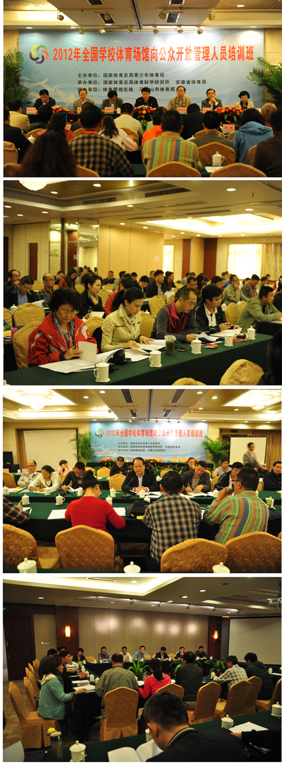 培训班培训日程共5天。期间,有关专家学者将从《学校体育场馆开放对社区体育与学校体育发展的推动》、《推进体育场馆开放、提高全民健康水平》、《学校体育场馆向公众开放管理模式探讨》等方面进行讲解。马鞍山市教育局局长万亚平在会上介绍了马鞍山市学校体育场馆向公众开放的经验,与会代表还将实地考察马鞍山市第二中学等学校场馆向公众开放情况。培训班将邀请辽宁省盘锦市第一完全中学、合肥市绿怡小学、湖北省武汉市第75中学、四川省成都市盐道街小学得胜分校这4所来自全国不同地域的学校做经验交流,会议期间还会组织学员们进行讨论学习。