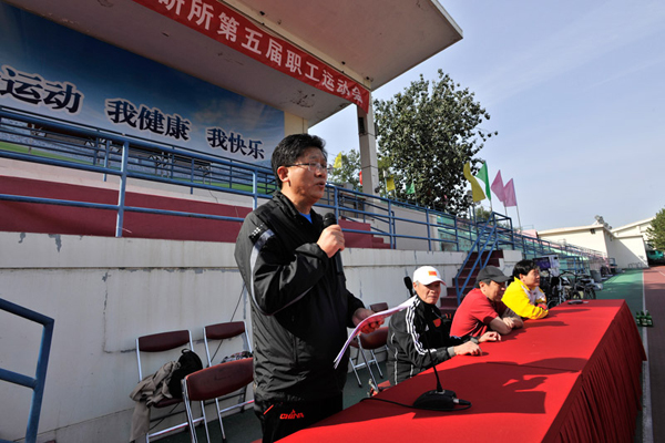 下午1点30分,科研所全体职工集聚在训练局田径场,整装列队。贾国富副所长代表所领导班子为运动会致辞,号召全体职工要牢固树立终身锻炼的体育健康理念,积极参加体育锻炼,走进操场,贴近自然,享受阳光,让“更高、更快、更强”的奥林匹克精神,奏响我们生命的最强音。田野所长亲自为男子100米决赛执发令枪。随着一声枪响,运动会正式拉开帷幕。在随后的比赛中,全所近100名职工分别参加了田赛、径赛、趣味赛和拔河比赛等17个项目的激烈角逐。所领导班子成员与全所职工同场竞技,鼓舞士气;各参赛运动员顽强拼搏,人人争先;啦啦队们加油助威,气势催人;裁判人员严格执法,确保比赛公平公正。整个运动会洋溢在一片欢快热烈的气氛中。