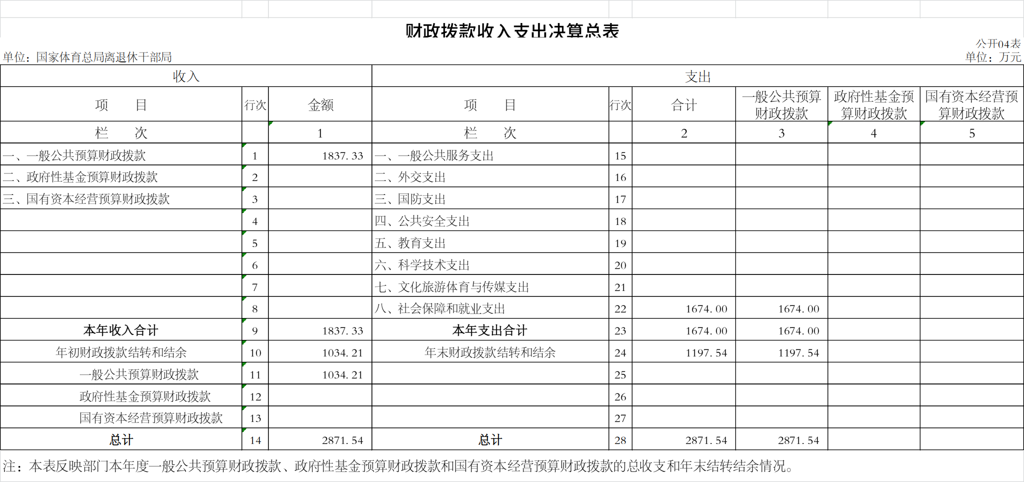四、财政拨款收入支出决算总表