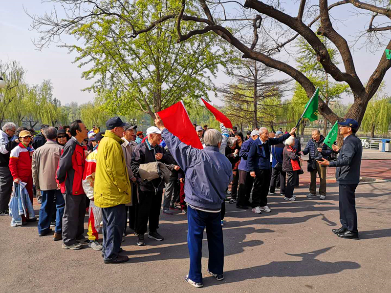 四月的北京,阳光明媚,微风和煦,离退休干部局在龙潭西湖公园组织机关离退休老同志举行健身走启动仪式。龙潭西湖公园水光潋滟、春花繁盛,许久未见的老同志嗅着阵阵花香,绕湖而行,一路畅谈。活动秩序井然,氛围融洽。 党委书记、局长贾国富同志参加活动并讲话。他指出健身走活动是离退休干部局坚持多年的品牌活动、亮点活动,是老体育人积极响应十九大报告提出广泛开展全民健身活动的具体行动,是积极参与健康中国建设的具体表现,也是积极应对老龄化社会的积极示范。健身走是离退休干部健康生活、快乐生活、幸福生活的生活方式,祝老同志更加健康、更加快乐、更加幸福。