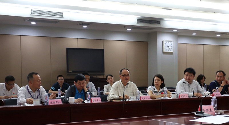 ![]() 国家体育总局副局长冯建中在汇报会上听取发言 |