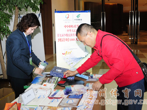 6月2日,在中华人民共和国第九届少数民族传统运动体育运会开幕倒计时100天之际,贵州省集邮公司发行了一枚纪念封,并在贵阳市集邮窗口及金阳新区中天凯悦酒店进行销售。当天在贵阳市集邮窗口集邮爱好者排成长队,踊跃购买,不到一小时就销售一空。一位姓程的集邮爱好者,在市区集邮窗口没有买到纪念封后,驱车赶到金阳新区中天凯悦酒店纪念封销售现场,购买了30多枚第九全国少数民族传统体育运动会开幕倒计时100天纪念封寄给国内、港澳台、新加坡、韩国的邮友。他说:“实寄封的意义就是记载了今天的时间,今天的邮戳是明天的邮政史,实际上我们最注重的是实寄的过程,它是历史的见证。”