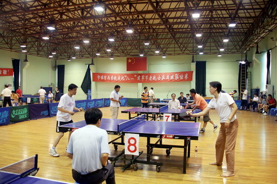7月26日下午,上海市体育局、上海市乒乓球协会为纪念八一建军节,特举办一场体育系统老战士乒乓球联谊赛。联谊赛受到系统内复转军人的积极响应,无论是领导还是职工,都挥拍上阵,再现当年军人风彩。市体育局党委副书记陈一平、刘建胜亲自参赛。