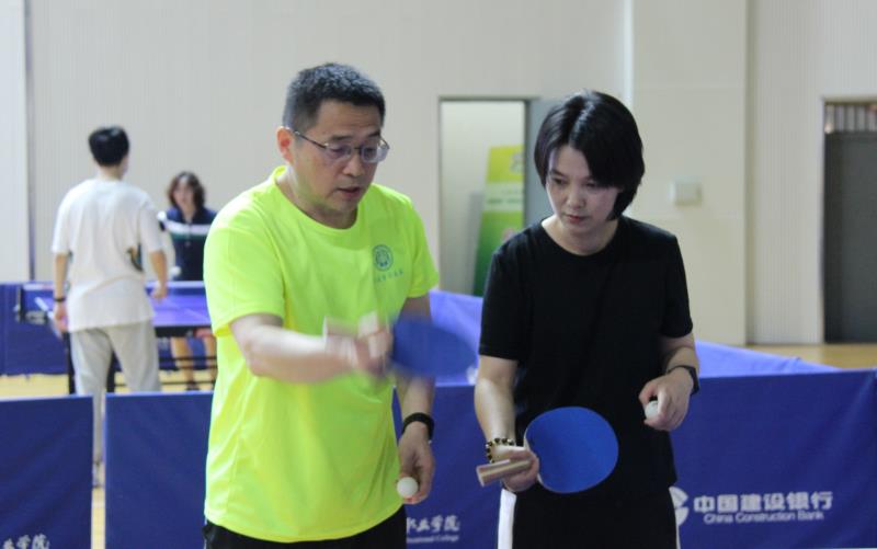 30日上午的临场技能培训,由前女子乒乓球国家队员、南京安识砂板乒乓球俱乐部砂超选手、南京体育学院丁玲玲副教授亲自授课。老师帮学员们纠正错误动作、分解技术要领。学员们分组练习,最后进行了四轮对抗,检验学习成效,并选拔出五名优秀学员。