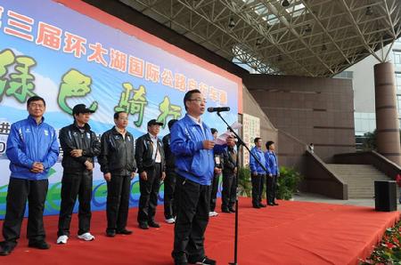 11月3日上午,2012第三届环太湖自行车赛开赛以来阵容最强大的大众绿色骑行活动在武进举行。武进西太湖大众绿色骑行启动仪式在区行政中心广场举行,有双人甜蜜快车20辆、3人幸福家庭20辆,共计800人参加。武进区领导臧建中、张建新、江建文、陆雅芬、邹玉明、周耀南、王友东出席仪式并与省体育局领导共同参与了荣誉骑行。