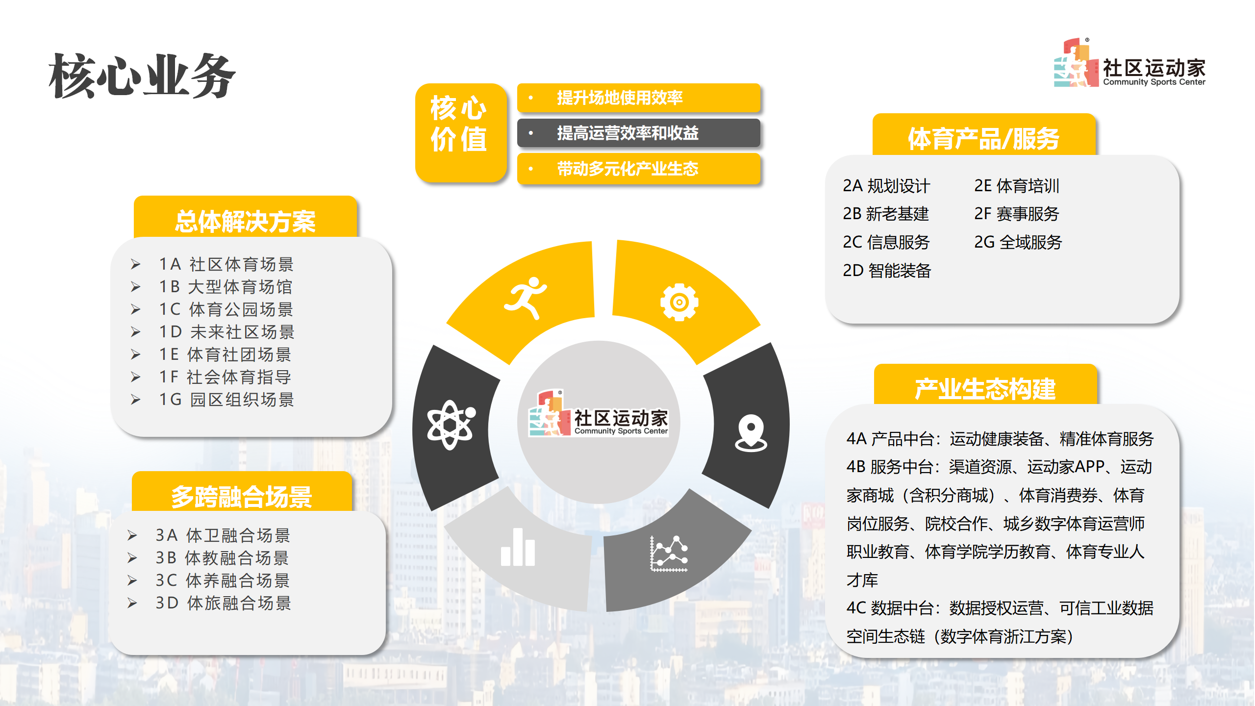 技术主体单位浙江运动家体育发展有限公司介绍了基地智能社会治理实验的技术研究方向,围绕“社区型智慧体育运动场景”整体解决方案和“城乡数字体育投建管运维”一体化服务,聚焦场景、深度挖掘、产业赋能,探索共建、共享、共情、共生,可持续发展的运动家生态圈。