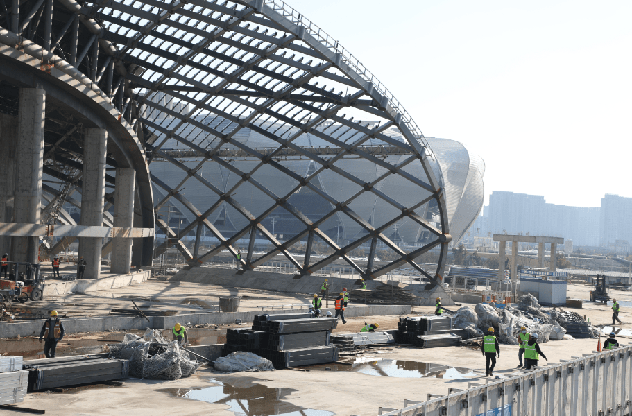 在杭州奥体中心主体育馆、游泳馆项目工地,所有人员采用集中实名制管理。工地建立了工人进出及体温检测情况日报制度,每位工人要经过体温测量、健康码检查才能进入作业区,用餐区采取一人一桌分餐形式,每个区域均有专人定时消毒,为防范突发情况,工地内还设置了28间临时应急集中隔离室。