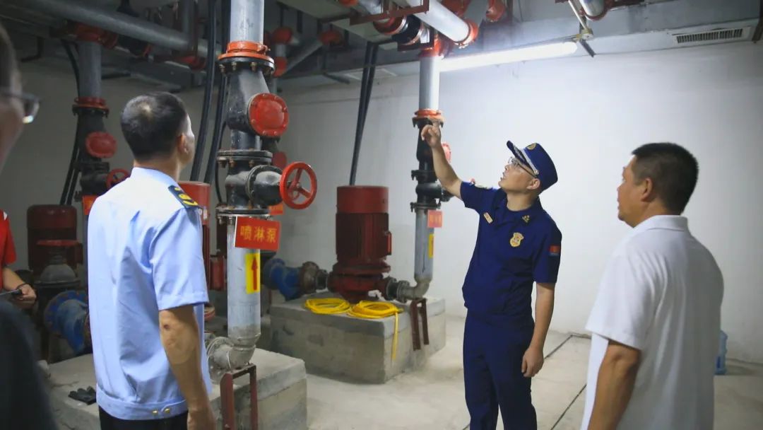 图为检查人员正在对桐城市体育馆消防设施进行检查
