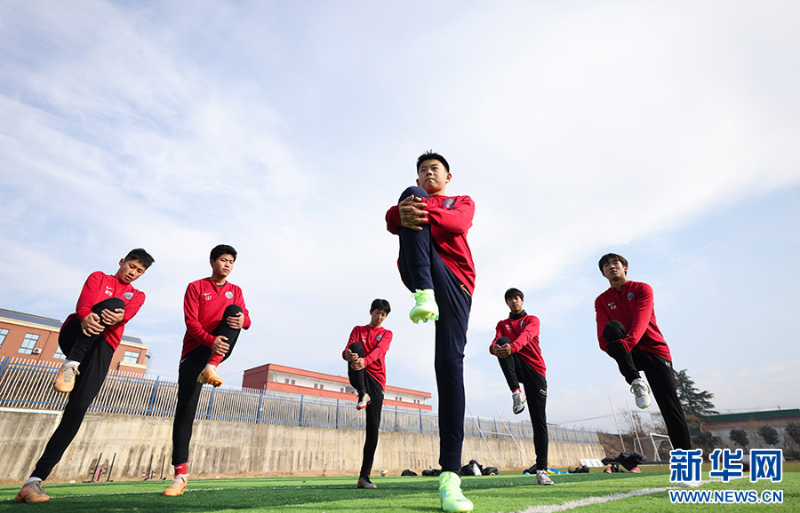 近日,走进安徽省合肥市肥西县丰乐镇河湾体育综合训练基地内可以看到一群青少年学员正热火朝天地进行足球训练前的热身。
