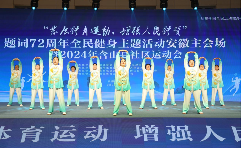 6月11日,安徽省纪念毛泽东同志“发展体育运动 增强人民体质”题词72周年全民健身主题活动启动仪式在含山县体育馆举行。