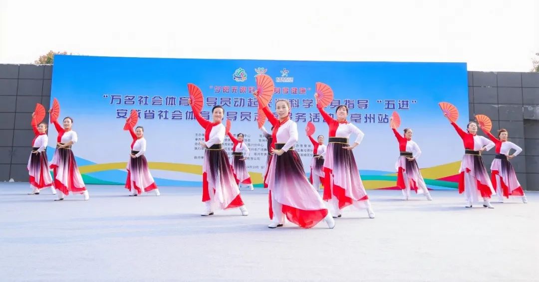 2024年10月15日,“夕阳无限好•健身享健康”“万名社会体育指导员动起来”科学健身指导“五进”安徽省社会体育指导员志愿服务活动(亳州站)在亳州市魏武广场举行。
