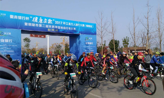 徽商银行杯“健康安徽”2017环江淮万人骑行大赛(铜陵站)暨铜陵市第二届环西湖湿地自行车赛举行