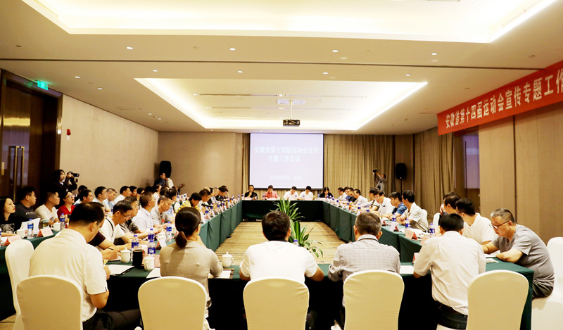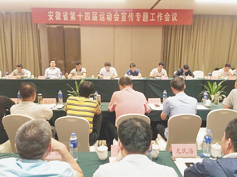 9月18日,安徽省第十四届运动会宣传专题工作会议在蚌埠市召开,会议围绕省十四运会新闻宣传工作目标,进行再督导、再部署、再落实,确保高标准、高水平完成省运会新闻宣传工作。省体育局党组成员、副局长,省十四运会筹委会宣传部常务副部长陈海军主持会议并作重要讲话,省十四运会筹委会宣传部成员单位负责人,各市代表团、各竞委会分管领导、新闻联络员共56人参加会议。