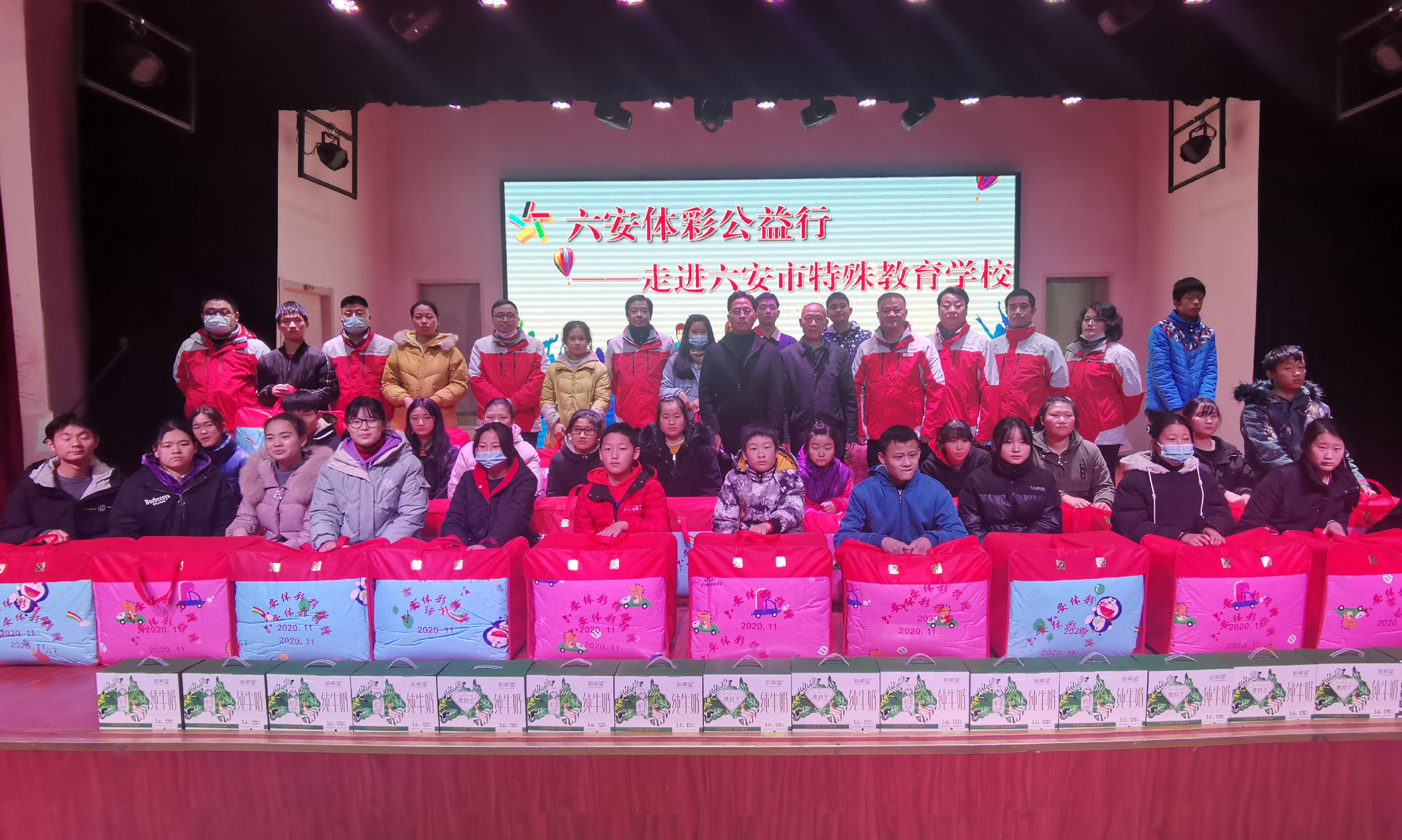 六安体彩为六安市特殊教育学校的孩子们送去30套被褥和30箱牛奶。张家全表示,“体彩做公益就要把每分钱都花在实处,用在刀刃上。”2018年,六安体彩分中心的工作人员观看了孩子们的绘画、手工作品后,现场义买近万元,以鼓励孩子们培养自强不息、积极向上的精神。2019年,六安体彩与学校沟通,得知学校有50多位孩子没有像样的书包,于是给孩子们带去爱心书包和足球等礼物。此次,得知住校的30多位孩子被褥单薄破旧,于是购买了30套被褥和30套床上用品三件套,送到孩子们手中,让孩子们在冬天感到温暖。
