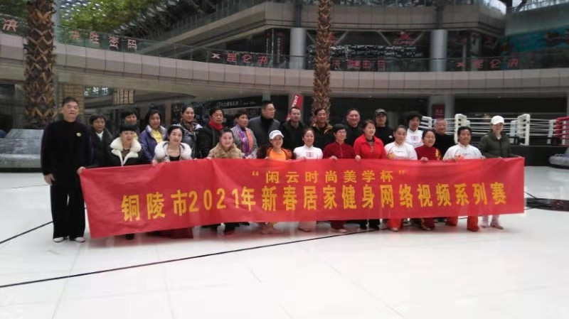 2月26日,由安徽铜陵市体育总会主办,市老年人体育协会、市武术协会、市健身气功协会、市健身操舞秧歌协会承办的“闲云时尚美学杯”铜陵市2021年新春居家健身网络视频系列赛颁奖仪式在闲云时尚美学馆举行,为在此次大赛中获奖的家庭颁奖。