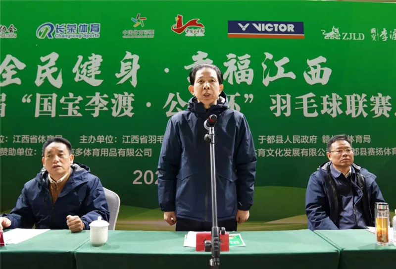 12月16日,“全民健身·幸福江西”江西省第七届“国宝李渡·公仆杯”羽毛球联赛总决赛在于都县体育中心开幕。省体育局党组书记、局长李小平出席并宣布开赛,省羽毛球协会主席汤建荣出席开幕式,于都县委书记黄法,省羽毛球协会副主席、珍酒李渡集团副总裁、李渡酒业总经理汤向阳出席并致辞,赣州市体育局党组书记、局长李诒芸出席开幕式,于都县委副书记、县长李松柏主持开幕式。