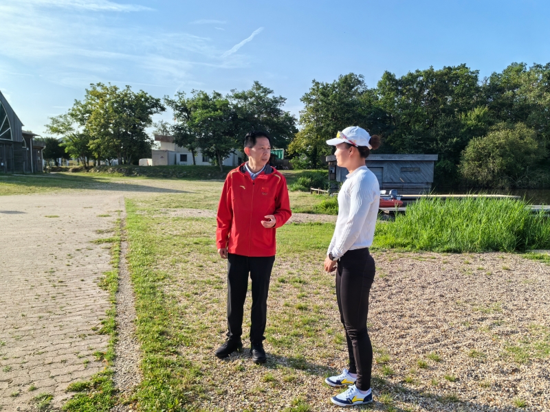 7月31日,江西省体育局党组书记、局长李小平来到法国巴黎诺曼底水上训练基地,代表省体育局党组看望慰问在这里备战巴黎奥运会的东京奥运会冠军、江西省优秀运动员徐诗晓及教练员和科医保障人员。