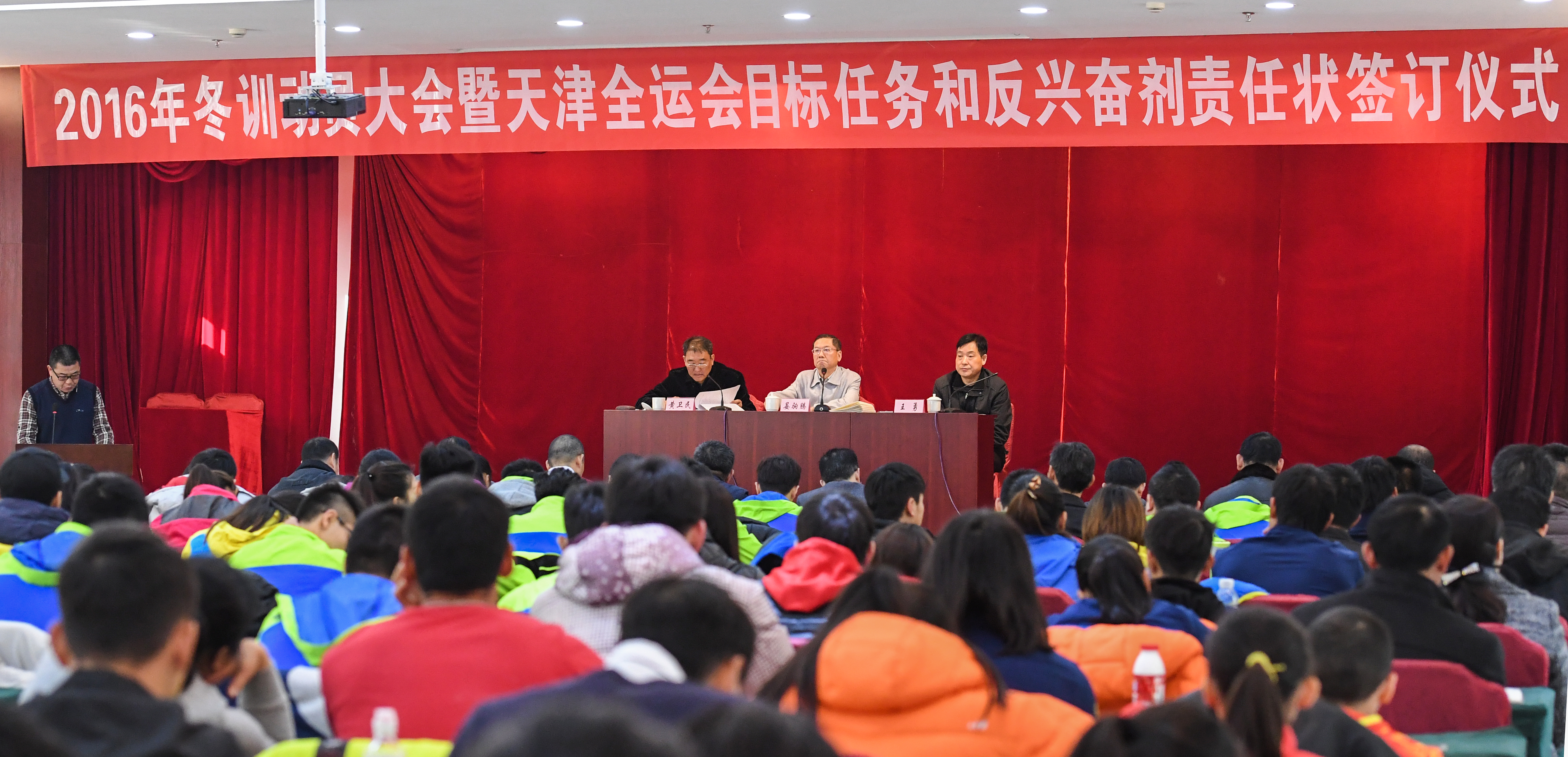 11月29日上午,江西省体育局召开2016年冬训动员大会暨天津全运会目标任务及反兴奋剂责任状签订仪式。江西省体育局党组书记、局长晏驹腾作讲话,党组成员、副局长王勇作冬训动员讲话,副巡视员黄卫民主持会议。省体育局机关处(室)主要负责人,各项目运动管理中心班子成员、教练员、运动员、科研医务人员260余人参加会议。