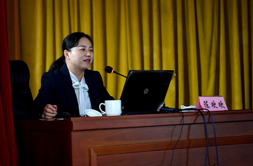 省司法厅普法与依法治理处陈欢欢处长是本次培训的授课老师,她多次获全国普法办、省普法办授予普法教育工作先进个人、学法用法先进个人等称号。她所做的题为《深入贯彻落实十九届四中全会精神提高依法治国依法行政能力》的授课,以深入贯彻落实十九届四中全会精神,全面推进依法行政能力和水平为主线,深刻分析了我国法治发展的进程、全面依法治国的十个坚持、法治政府建设新要求等内容。她的授课深入浅出,既有理论的高度,又有很强的操作性,与会人员均表示受益匪浅。